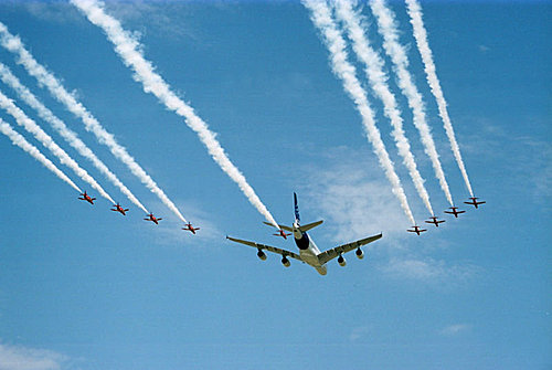 The A380 with the Red Arrows